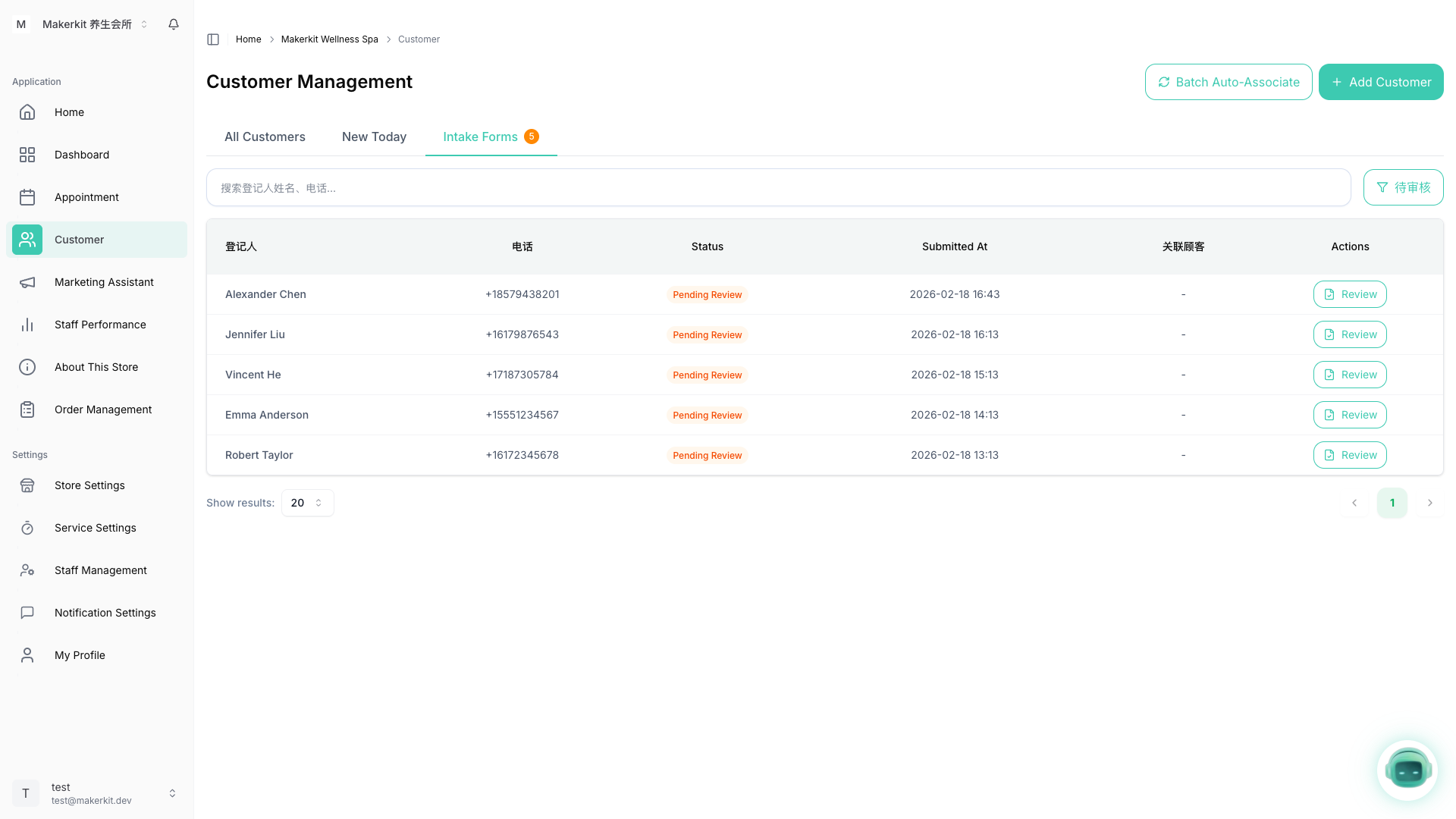 팁: 일괄 자동 연결을 클릭하면 시스템이 전화번호를 기준으로 접수 양식을 기존 고객에 자동으로 매칭하고 연결합니다 — 모든 대기 양식을 한 번에 처리합니다.