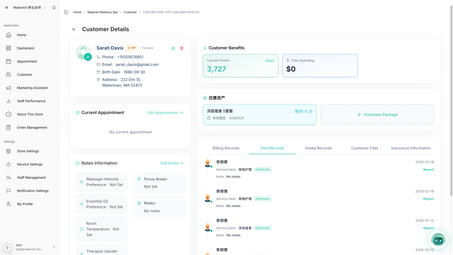 - 방문 기록을 활용하여 고객이 선호하는 테라피스트를 파악하고 일정을 잡으세요