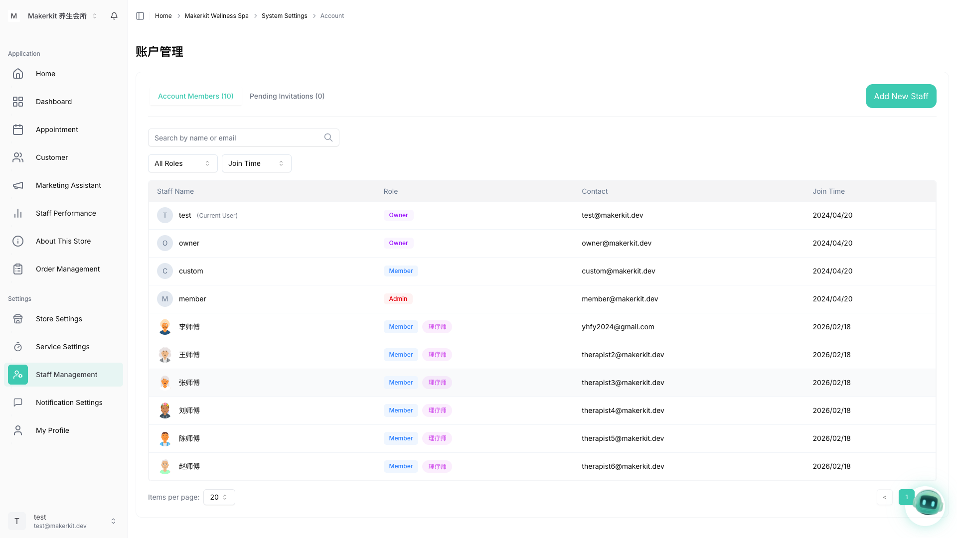 왼쪽 사이드바에서 직원 관리를 클릭하여 계정 관리 페이지를 엽니다: